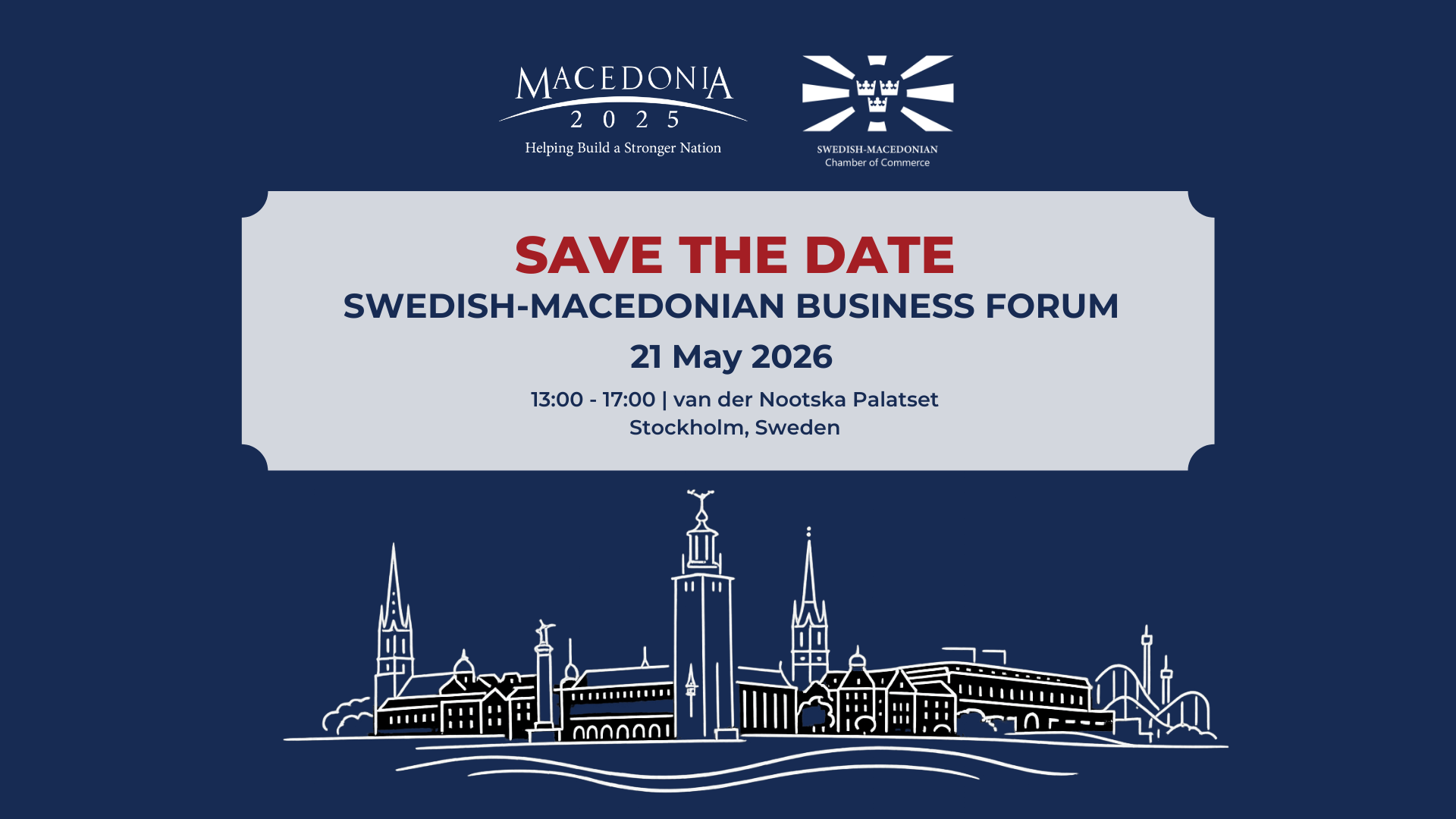 On 21 May 2026, Macedonia2025 and the Swedish-Macedonian Chamber of Commerce (SMCC) will host the first-ever Swedish–Macedonian Business Forum in Stockholm, Sweden. This landmark event marks a new chapter in strengthening economic cooperation between Macedonia and Sweden, creating a dynamic platform for companies, entrepreneurs, investors, and diaspora professionals to connect, exchange ideas, and explore concrete […]