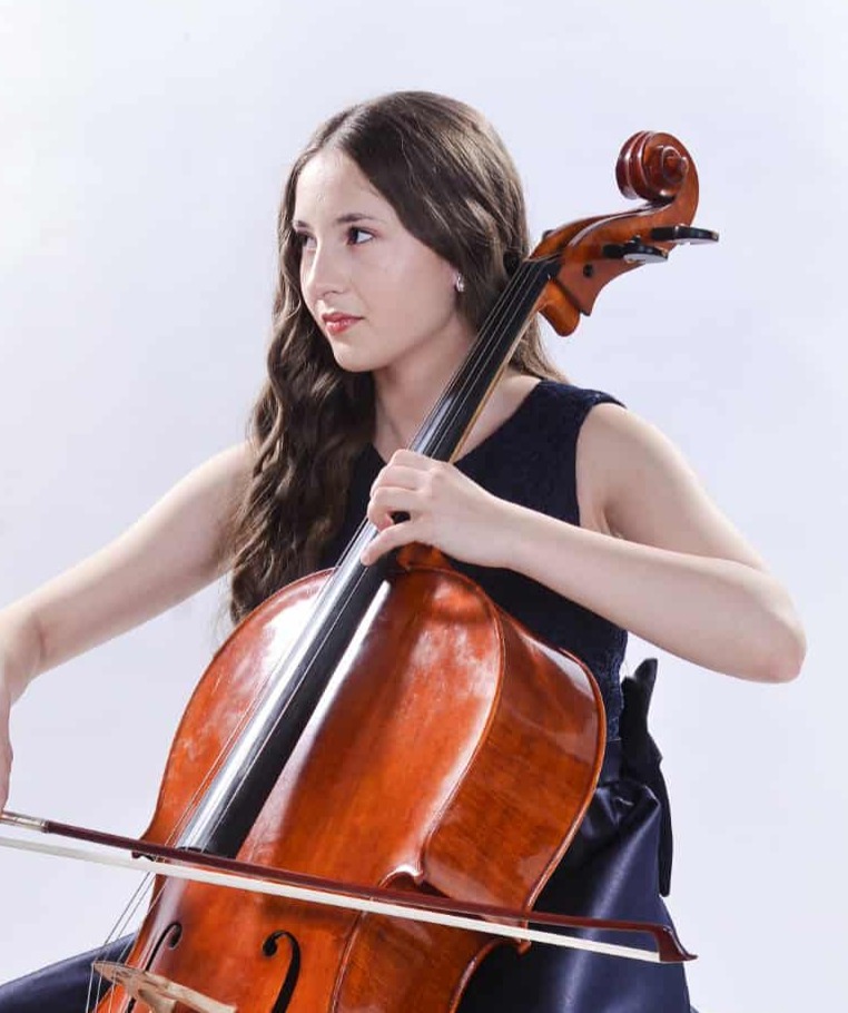 Eva Malinovska is a 2-year student at the “Ilija Nikolovski–Luj” Music High School in Skopje, specializing in cello under the mentorship of Professor Mare Videvska. She began playing at the age of eight, and her absolute pitch and musical talent were recognized early on by renowned professors and musicians.