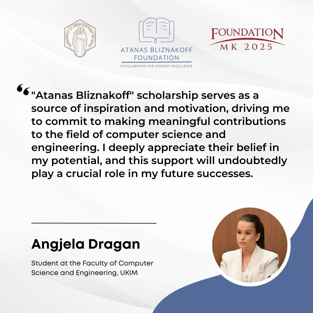 As a result, in 2022, Catalyst, a regional foundation headquartered in Belgrade dedicated to fostering and transforming philanthropy in Western Balkan countries, included the Macedonia2025 ABF Scholarship Programs in its “Giving North Macedonia 2021: Report on the State of Philanthropy” as one of the Champions of philanthropy—highlighting charitable initiatives that made a significant impact in 2021. Since 2023, Macedonia2025 has been partnering with the “Atanas Bliznakoff Foundation” in the United States to administer upcoming open calls and ensure the continuity of scholarship rights for current scholars. Macedonia2025 wishes to express gratitude to “Atanas Bliznakoff Foundation” in the United States for supporting student excellence in Macedonia.