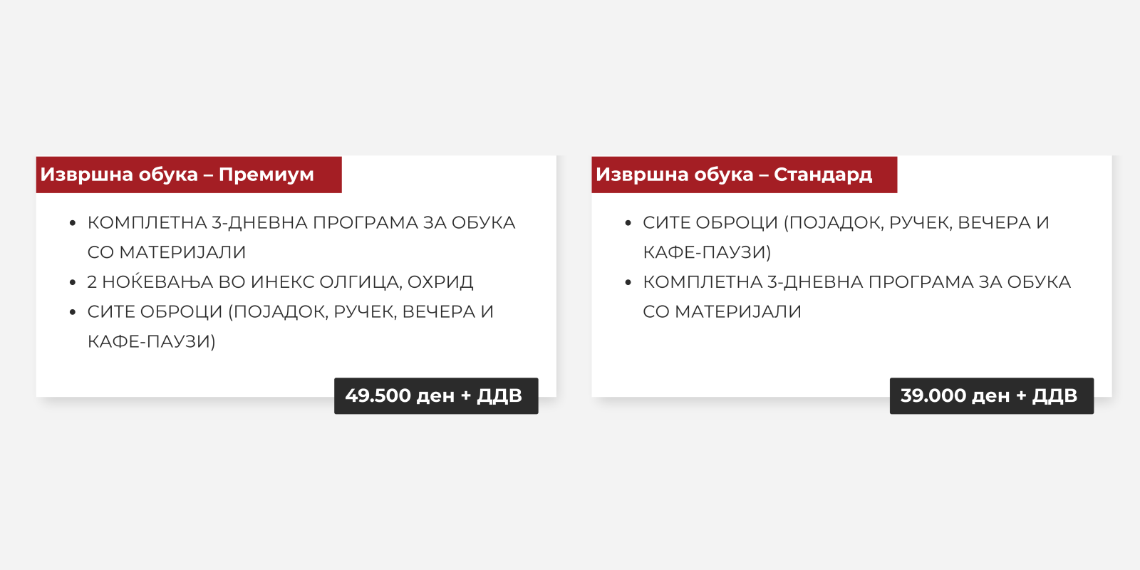 Бројот на места е ограничен, со цел да обезбедиме високо квалитетно искуство за секој учесник. Обуката е интерактивна и бара активно вклучување и ангажман од сите присутни.